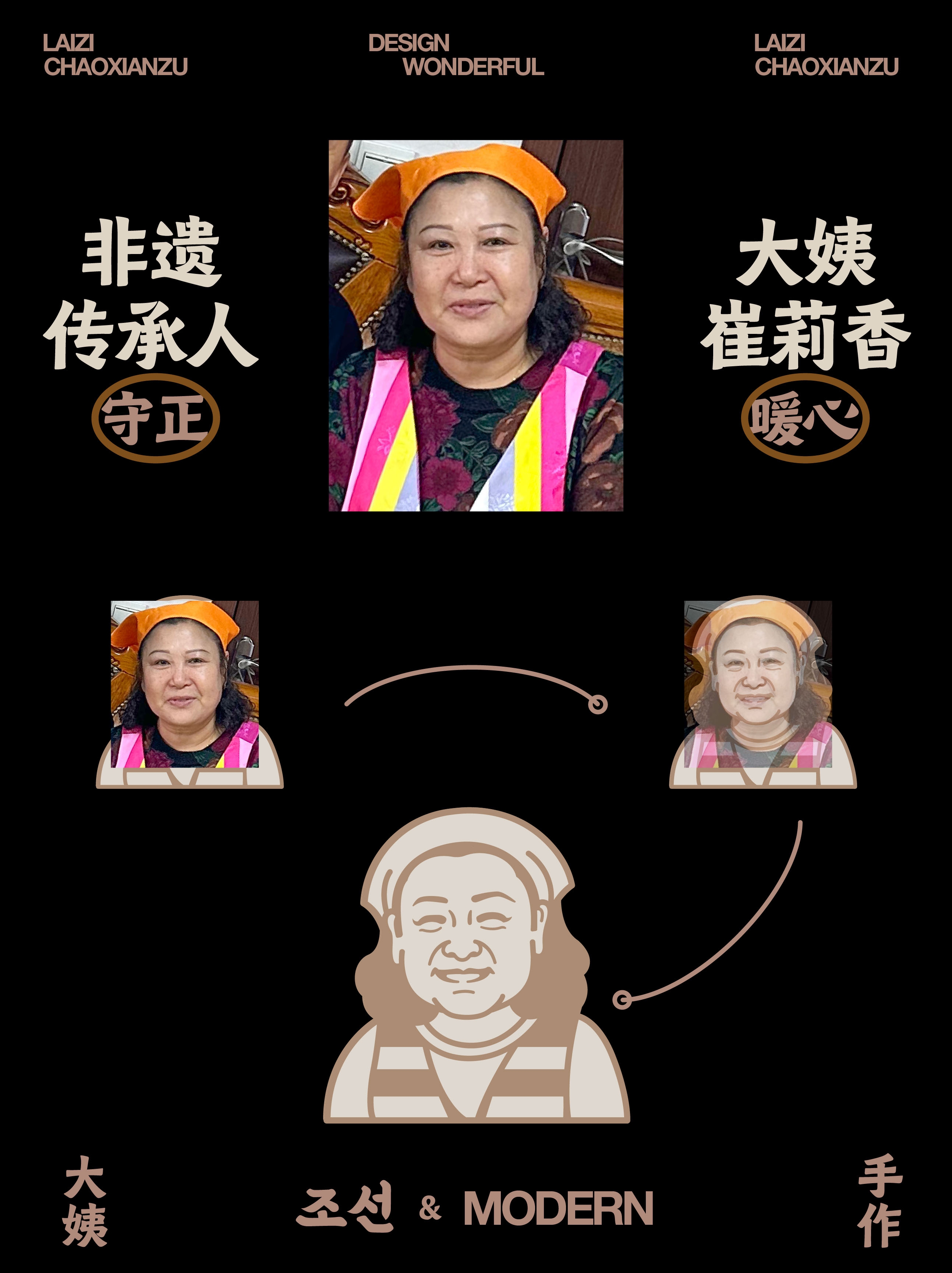 打造文化力与舒适感的品牌。输出插画与实体的两个大姨IP,将朝鲜族大姨具象化、立体化。