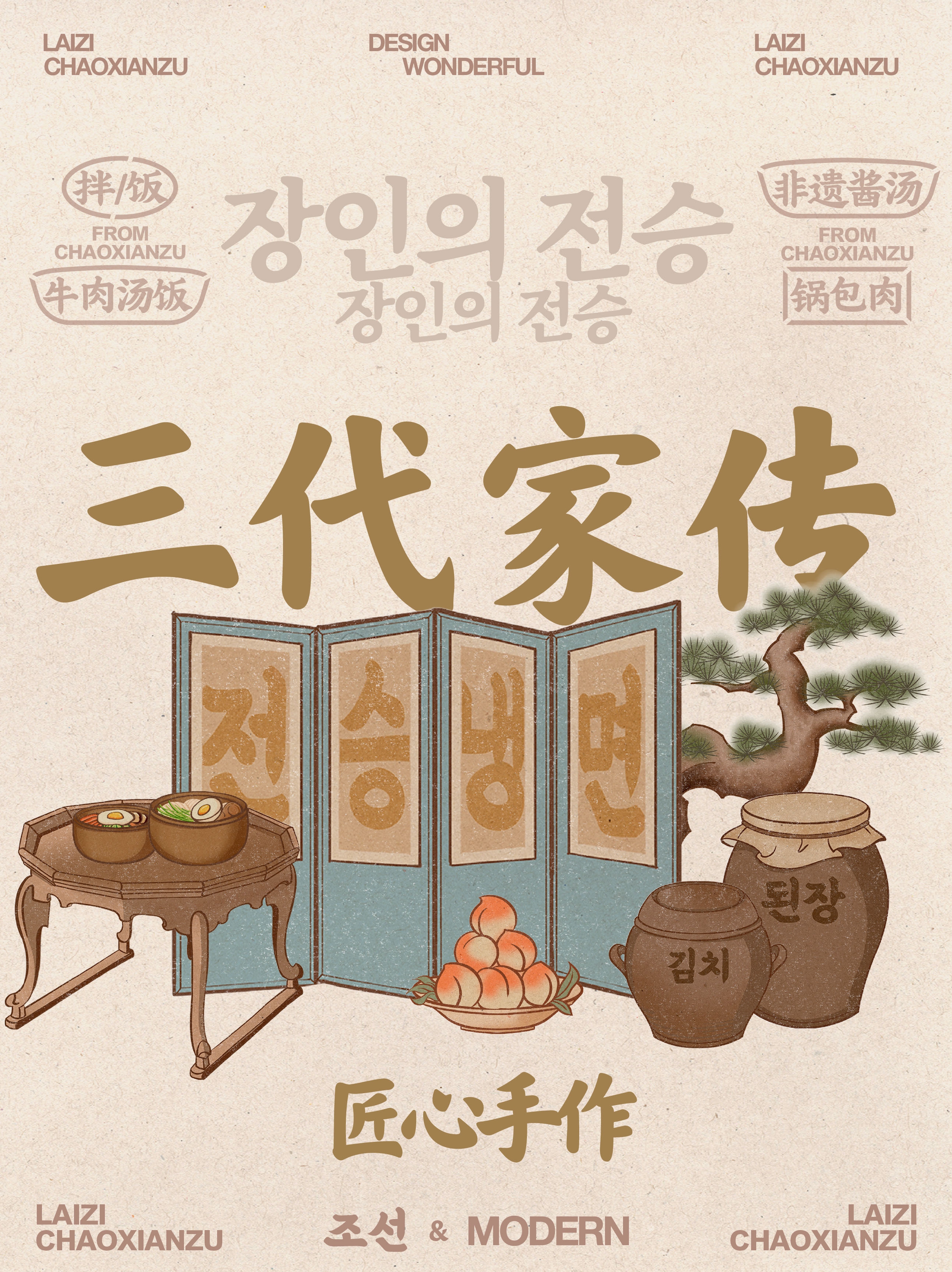 强化大姨朝鲜族冷面、泡菜、大酱的非遗传承人形象❗